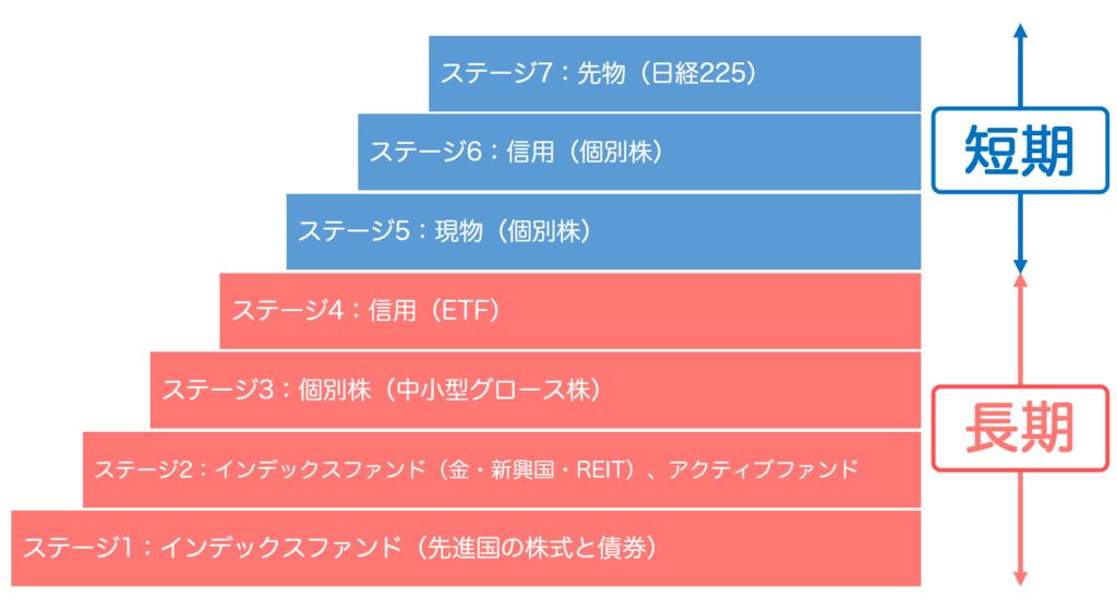 ステージ1~4は長期投資、5~7は短期投資になります。